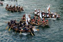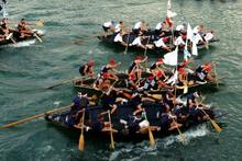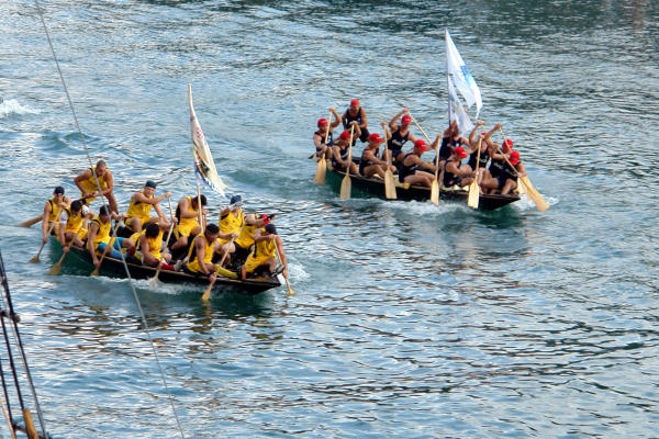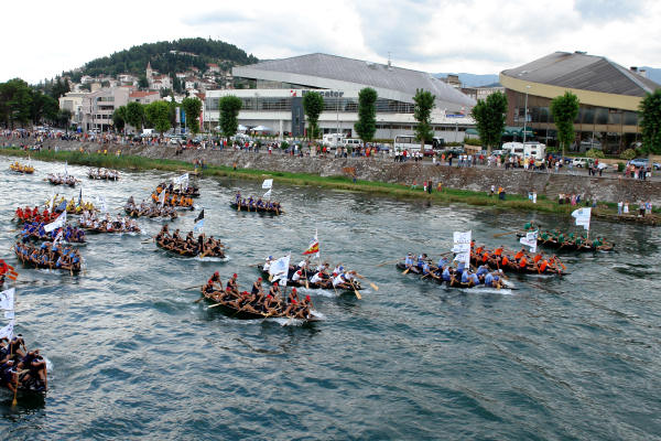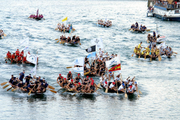 Lađari se uveslavaju, a publika nestrpljivo čeka početak.