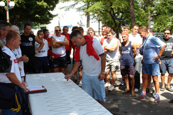 Ždrijebanje lađa pred hotelom Narona u Metkoviću.
