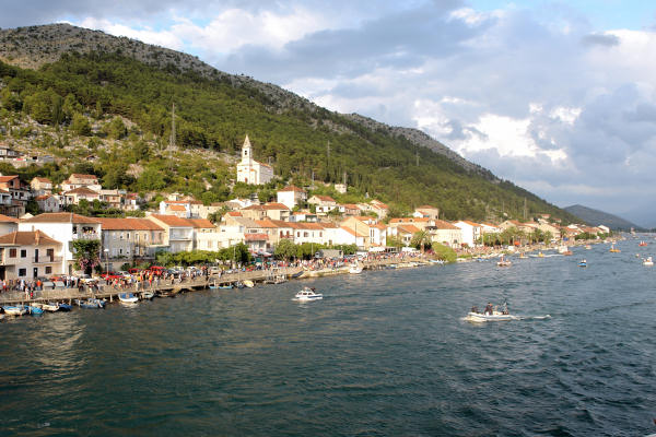 Rogotinjani pred odvojkom Crne rijeke u Neretvu. Mi do Ploča moramo okolo preko ušća.