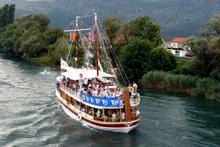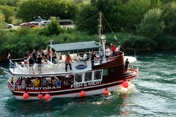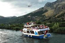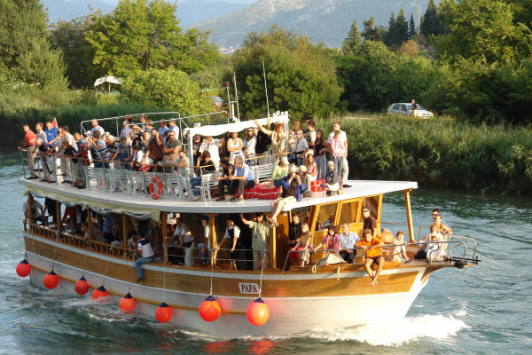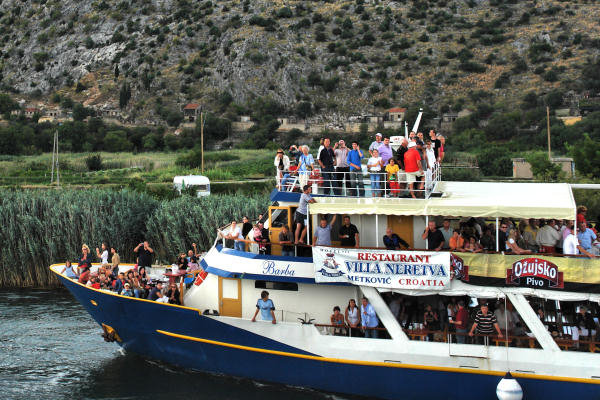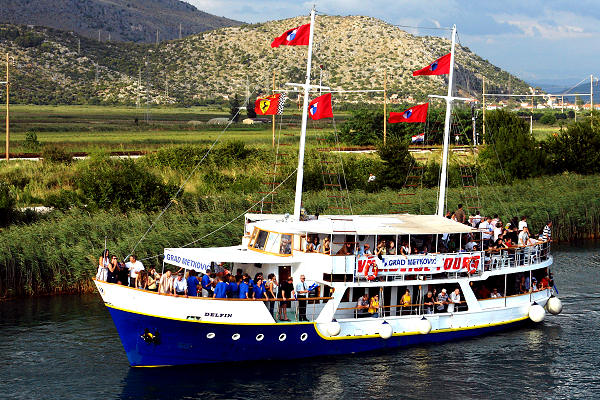 A sad ono najljepše - brodovi na Neretvi. Delfin, brod sa gostima grada Metkovića na trenutak obasjan suncem.