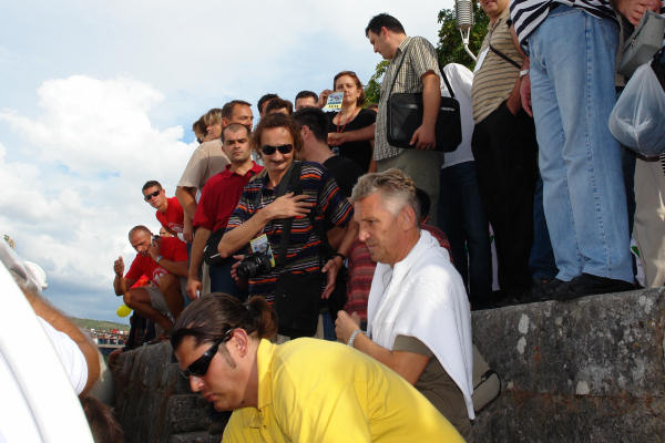 Naš plan bio je, kao i prethodnih dviju godina, sa zapovjednoga broda pratiti Maraton od Metkovića do Ploča. Uredno smo dobili novinarsku akreditaciju i na vrijeme se bez problema ukrcali na brod Bibe, koji je ove godine zamijenio puno veću Palagružu. Čekalo se na ukrcaj Premijera i ostalih gostiju. Nakon što su oni stupili na brod, kapetan Bibe shvatio je kako se na brodu nalazi puno više ljudi nego što je bilo najavljeno (i koliko brod smije primiti) pa, potpuno ispravno, naređuje prekid ukrcaja. Tu nastaju problemi i neugodne scene jer se mnogi s kartama ne uspijevaju ukrcati. Očito je da su se mnogi na neki način ukrcali ilegalno ili je izdan veći broj karata. Kada smo vidjeli da su na suhom ostali kolege iz Večernjaka i Slobodne i mi smo odlučili napustiti brod te Maraton popratiti na drugi način.