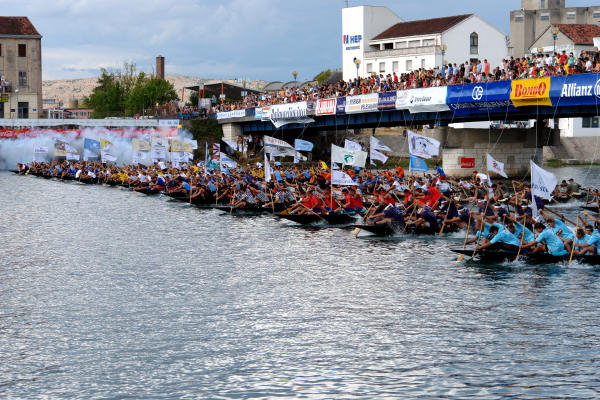 Start je, kao i uvijek, bio spektakularan. Trideset tri lađe, u dva reda, pokrenule su se nakon zvuka sirene uz detonacije tzv. topničkog udara. Nastala je borba za čelne pozicije koje osiguravaju mirnije veslanje, no to baš nije bilo jednostavno jer je Neretva bila pregrađena plutačama koje su odvajale lađarsku stazu od koridora za prateće brodovlje. Ove se godine problem brodova pokušao riješiti na taj način, no izgleda da ne postoji idealno rješenje.