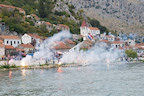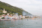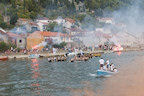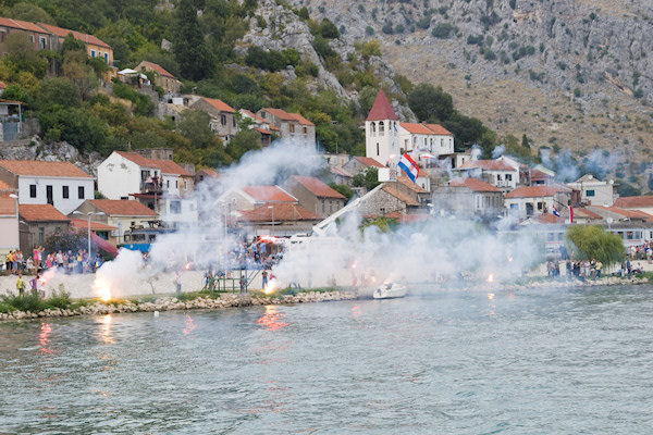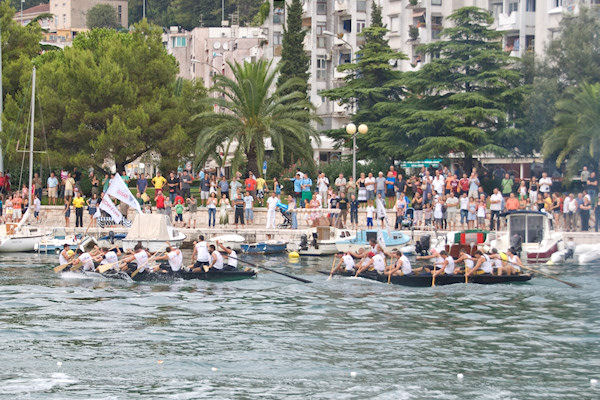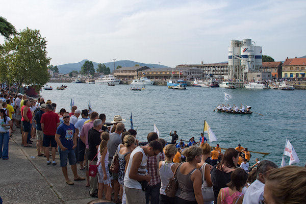 Komin veslačima uvijek priredi spektakularan doček, a naročito kada su njihovi na čelu utrke. Gotovo nitko nije obraćao pozornost na crvenu posadu Baćine koja je malo po malo nadoknađivala zaostatak da bi na samom ulazu u crnu rijeku pretekla Staševicu. Kroz Crnu rijeku u utrku se uključuje i rogotinski Marko Markota pa na njezinom ušću u Pločanski zaljev prvi ulaze Gusari Komin, za njima Stablina, a kao treći zajedno Baćina i Marko Markota koji su na jednom mjestu u Crnoj rijeci zapeli i dogovorili se da će zajedno doploviti do cilja. Peti su na cilj stigli Donjani donji, a šesti Rogotin.