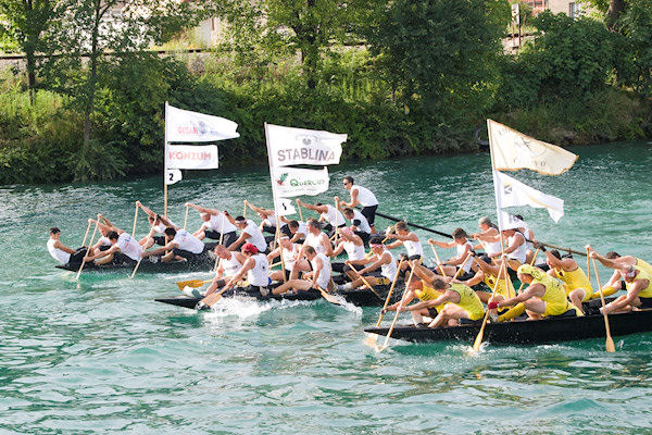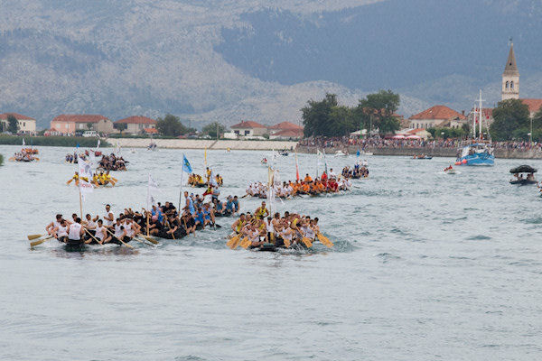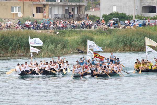 Sama utrka bila je zanimljiva. Nakon nekoliko stotina metara na čelo su stali Gusari Komin, Stablina, Čeljevo i Donjani donji. Mrtva utrka vodila se sve do pred Kulu Norinsku kada Čeljevo malo posustaje no pristižu Škrapa Momići i Staševica. Kroz Krvavac lađare pozdravlja zvonjava s crkvenoga tornja i gledatelji s bakljama. Opuzenska riva također je bila puna gledatelja koji su gledali kako s druge strane rijeke Škrapa Momići obavlja izmjenu, ali sa svježim veslačima ne uspijevaju nadoknaditi izgubljeno vrijeme. Pod Opuzenom Gusari Komin i Stablina dalje vode mrtvu utrku, a za lađu i pol prate ih Staševica i Čeljevo.