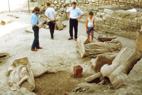 Nakon što je Grad Metković uspio dogovoriti otkup zemljišta od nasljednika Plećaševih štala, 1995. započela su iskapanja koja su senzacionalno odjeknula u Hrvatskoj i svijetu. Tijekom dvije godine stručnjaci Arheološkog muzeja u Splitu, pod vodstvom prof. Emilija Marina, uspjeli su na relativno malom prostoru pronaći 16 monumentalnih kipova. Osim toga, otkopan je Forum i Augusteum. Kipovi su bili bez glava, nađeni onako kako su ih starokršćanski osvetnici ostavili. Među njima isticala se statua cara Augusta u imperatorskoj pozi. Svi kipovi su preneseni na restauraciju u Split. Kada jednog dana bude izgrađen muzej vratit će se  na mjesto gdje su pronađeni.
