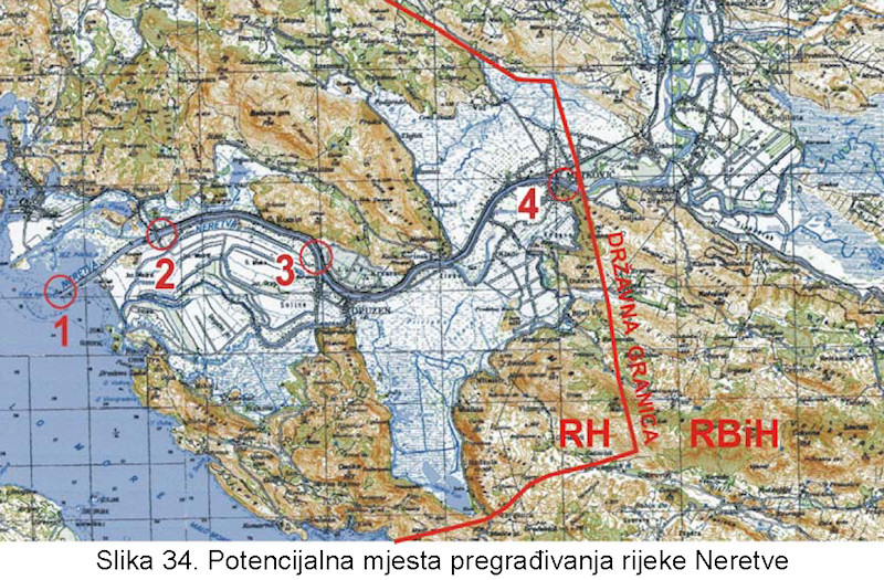 Pri odabiru mjesta izgradnje pregrade na Neretvi razmatrale su se četiri lokacije, a kao najpovoljnija izabrana je ona označena brojem 3, oko 1800 metara nizvodno od Opuzena. Odabrano je takvo rješenje pregrađivanja kojim se zaustavlja prodor mora, ali kojim se