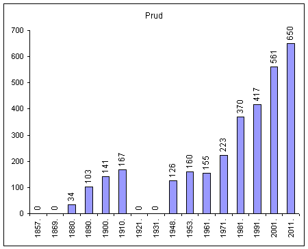 U 1981. smanjeno izdvajanjem dijela naselja u istoimeno samostalno naselje Prud za koje i sadrži podatke u 1857., 1869., 1921. i 1931. U 1991. smanjeno za dio naselja koje je pripojeno naselju Metković.