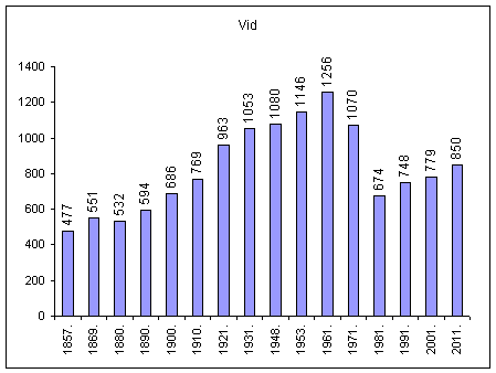 Iskazuje se od 1981. kao samostalno naselje nastalo izdvajanjem dijela naselja Vid. U 1857., 1869., 1921. i 1931. podaci su sadržani u naselju Vid.