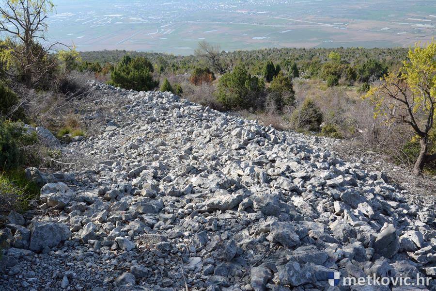 Na putu gore uspjeli smo nekoliko puta zalutati u neprohodnoj šikari, ali smo se na koncu dokopali vrha Velike Mitruše. I zaista, tamo je poprilično velika ilirska gradina dimenzija oko 200 x 130 metra. S vrha se pruža pogled na Metković,
