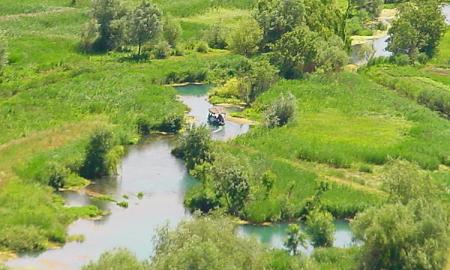 Od izvora Norina u Prudu prema Vidu krenula je lađa puna turista. Eno je pred prvim ozbiljnijim zavojem. Staro neretvansko plovilo doživjelo je laganu modifikaciju, ali opet u tradicionalnom stilu. Dodan joj je krov od osušenog šaša (krova) kako bi nježnu turističku kožu sačuvao od jakog neretvanskog sunca.