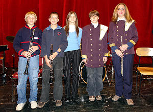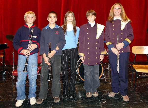 Sinoć je petero mladih glazbara (10-14 godina) prvi put nastupilo na Božićnom koncertu Glazbe. Na slici dolje s lijeva na desno: Martin Barbir, Hrvoje Ilić, Petra Dominiković, Karlo Murtezani i Matea Tolić.