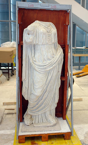 21.3.2007. - Poslije više od šesnaest stoljeća skulpture iz Augusteja u Naroni naći će se na mjestu s kojeg su oborene nakon što je kršćanstvo postalo službena religija u Rimu. Skulpture su prošle subote dopremljene iz zagrebačke Gliptoteke, a jučer je započela operacija njihova postavljanja na tribinu hrama.