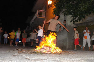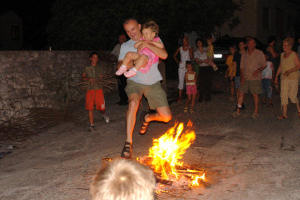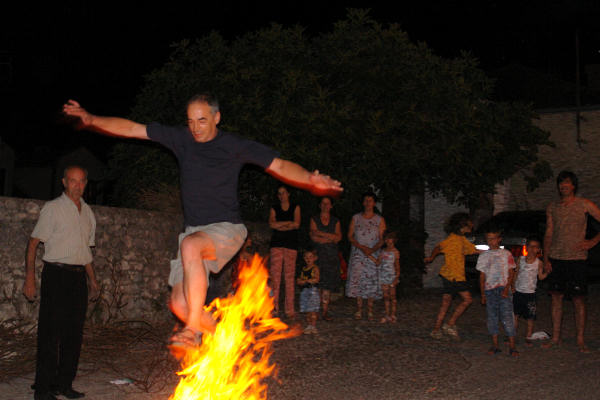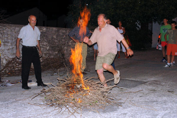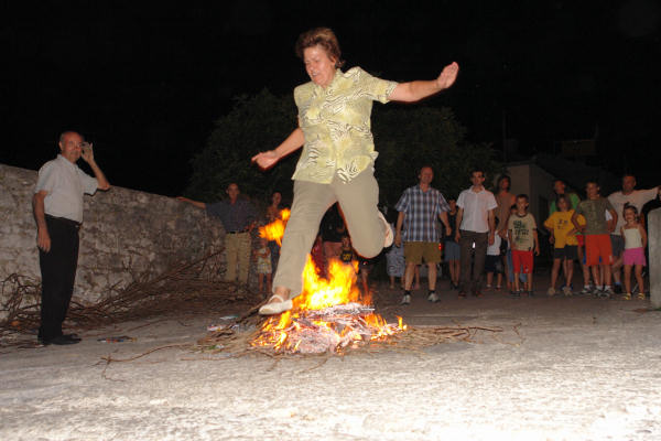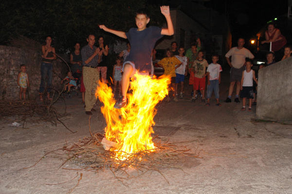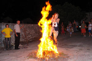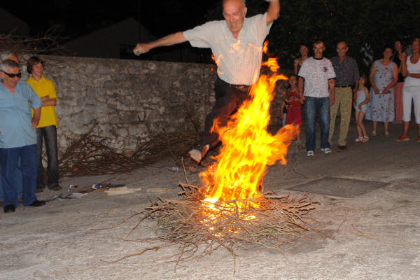 Druženje je nastavljeno na obližnjem Verajinu guvnu na kojem je zapaljena vatra, a prvi skok izveo je najstariji - Ivo Brljević. Slijedili su ga Ivo, Ivica, Ivanka... pa do najmlađih kojima su roditelji malo pomogli u prvim skokovima preko vatre.