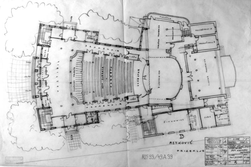 Freudenreichov nacrt prizemlja današnje kazališne zgrade iz 1949. Kasnije je u gradnji došlo do određenih odstupanja