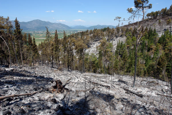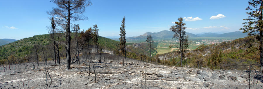 1.7.2007. - Posljednjih dana donosili smo vijesti o požaru što je opustošio padine Šibovnice i Gladavca kraj Metkovića. Danas prije podne krenuli smo fotoaparatom zabilježiti što je ostalo.