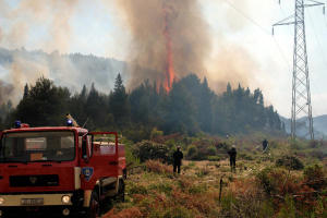 Na rubu Koševa na predjela Simin dol krenuli smo utrtom stazom (što su je ovih dana ugazile noge stotinu vatrogasaca) do vrha Šibovnice gdje se prekjučer odvijala prava drama (donje fotografije klikom uvećejte). Nakon stotinjak metara pješačenja kroz zeleni tunel izbijamo na sivo pepeljastu čistinu što ju je načinila vatra. Još malo više fotografiramo usjek između Šibovnice i Gledavca. S druge strane usjeka, na nekih dvjesta metara od nas, zamjećujemo dežurnog vatrogasca iz JVP Metković. Pred samim vrhom srećemo još dvojicu pripadnika JVP Metković kako brentačama gase tinjajući panj. Ovo je mjesto na kojem je prije dva dana snimljena donja fotografija. Što se više penjemo prizor je sve užasniji. Panoramski snimak sa vrha Šibovnice.