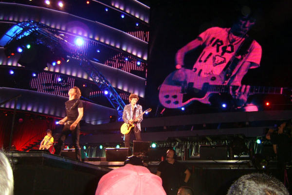 10.7.2007. - Rolling Stonesi nikad nisu bili bliže Metkoviću. Legendarni rock metuzalemi sinoć su održali koncert na Jaz plaži crnogorske Budve, tek 125 km zračne linije od Metkovića. Stoga se među 35.000 posjetitelja našlo i podosta naših sugrađanki i sugrađana. Jedna od njih uspjela je prošvercati digitalac i snimiti ovu fotografiju iz poprilične blizine. Zahvaljujemo na ustupljenoj fotografiji.