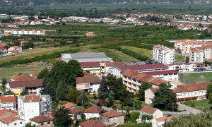 U prvom planu crkva i pastoralni centar u župi Sv. Nikole Biskupa. U pozadini vidonjski brežuljak sa crkvom Gospe Snježne.