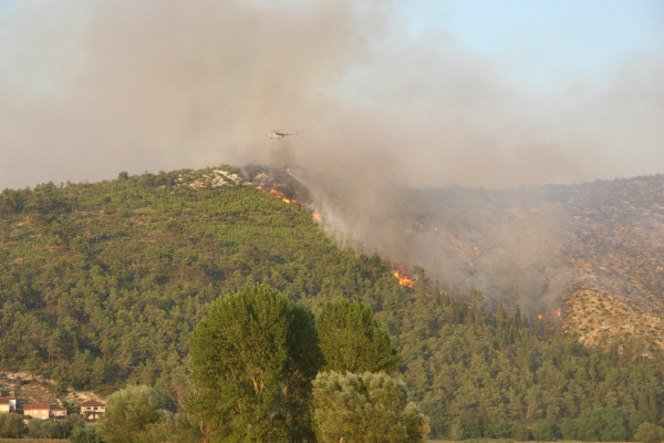 21.7.2007. - Požar što se danima približavao iz susjedne BiH noćas je prešao vrh Šibanice i u poslijepodnevnim satima došao na rub županijske ceste prema općini Zažablje.