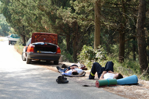 Mjesta na kojima je požar zaustavljen. Tlo je potpuno mokro Mladi pripadnici JVP Metković sa brentačama Na povratku u grad prošli smo kraj momaka iz Orebića koji su čvrsto spavali nakon burne noći