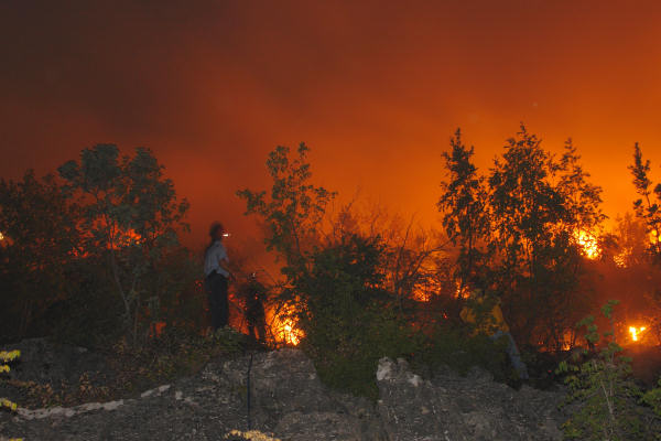 30.7.2007. - Već nekoliko dana na hercegovačkoj strani gori na planini Žaba. Kako je nitko nije gasio vatra se jučer proširila na Malu Žabu na čijim obroncima se nalaze Vidonje i Dobranje. U večernjim satima zaprijetila je kućama.