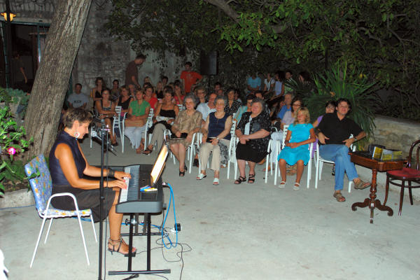 Metković, 27.8.2007. - Sinoć u dvorištu pred obiteljskom kućom Nataše i Zdravka Barbira, u Nazorovoj 11, koncert je održala Tereza Gabrić. Oko 150 okupljenih ljubitelja jazz standarda, kao je koncert bio i nazvan, čuli su dvadesetak pjesama koje je Tereza otpjevala prateći sebe na električnom klaviru. Na kraju, na bis,  je otpjevala i jednu domaću stvar, skladbu Zvonka Šipića i Drage Britvića "Zvona moga grada". Koncert je organizirala Udruga mladih grada Metkovića "Kolektiv".