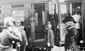 Ukrcaj nadvojvode Ferdinanda na vlak u Metkoviću. Obratite pozornost na stav željezničara pred vagonom.