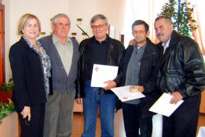 Na ručku u restoranu „Domagoj“, organiziranom za dobrovoljne darovatelje, uručena su priznanja za pedeseto darivanje četvorici naših sugrađana: Vijeki Bebiću, Radi Paponji, Zdravku Babiću i Anti Donkiću.