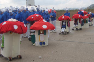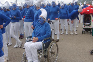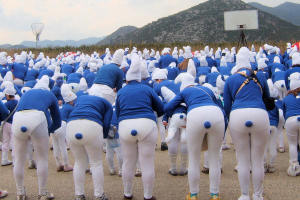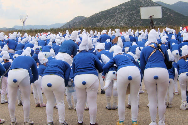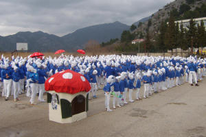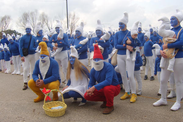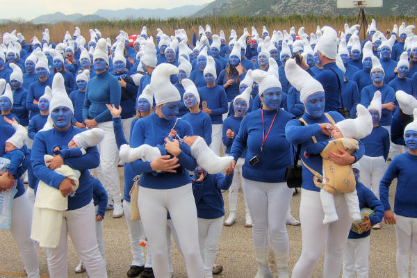 Metković, 4.2.2008. - Nakon što su saznali da prošle nedjelje, ipak, nisu oborili Guinnessov rekord od 451 osobe maškarane u Štrumpfa, Kominjani su jučer nadmašili sami sebe. Na igralištu NK Gusara pojavilo se točno 553 Kominjana maškarana u nekad popularne likove iz crtanog filma.
