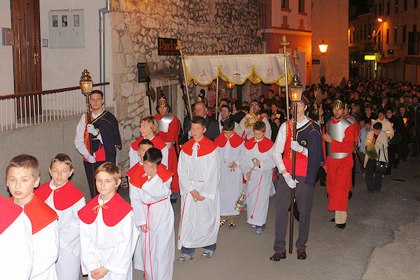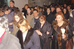 Metković, 22.3.2008. - Iako je sinoć zapuhao neugodno hladan vjetar to nije omelo mnoštvo vjernika u obje metkovske župe da sudjeluju u procesijama. Procjenjuje se da je u obje procesije sudjelovalo gotovo pola stanovnika grada. Procjena se temelji na tome da je Udruga osoba s invaliditetom „Prijatelj“ iz Metkovića za župu Sv. Ilije izradila 2000 svijeća sa zaštitnim sjenilom. Prihod od prodaje svijeća iskoristit će se za potrebe župe.