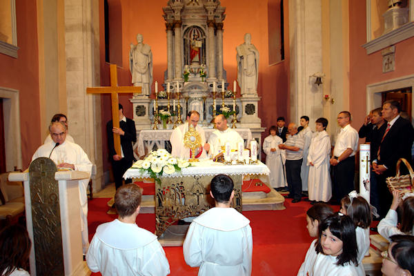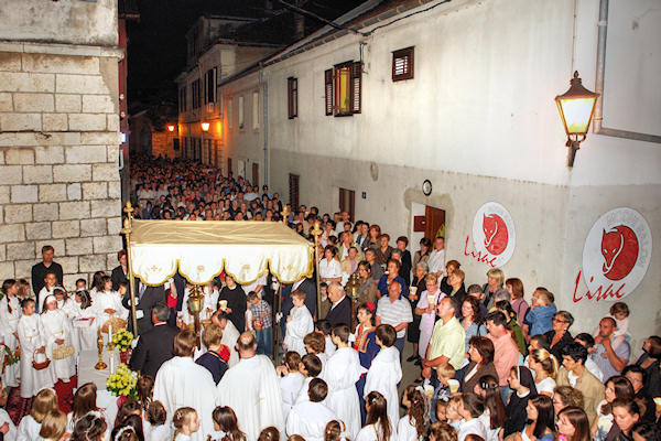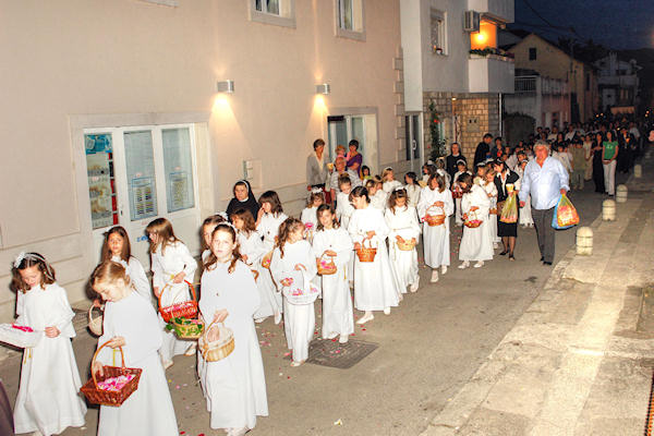Nakon Svete mise u crkvi sv. Ilije koju su predvodili misionari fra. Ante Akrap i fra Domagoj Runje krenula je procesija u kojoj su uz Zbor mladih župe sv. Ilije sudjelovale i prvopričesnice sa košaricama punim cvjetnih latica. Na svome putu procesija je uz molitvu zastala pred trima improviziranim oltarima koja vjernici tradicionalno podižu u različitim dijelovima grada. Uz razna obilježja u procesiji je nošen i križ Misija koje su se održavale od nedjelje do četvrtka.