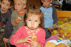 24.10.2008. - U Središnjem vrtiću u Metkoviću jučer je održana svečanost obilježavanja Dana kruha. Tom prigodom vrtić je posjetio metkovski gradonačelnik Stipo Gabrić Jambo sa suradnicima, a župnik župe Sv. Ilije fra Dušan Džimbeg blagoslovio je kruh, peciva i kolače što su ih djeca toga dana donijela od kuće. Nakon kraćeg programa, koji su izveli vrtićani, svi su pojurili prema krcatim stolovima, o čemu donosimo nekoliko fotografija koje možete povećati.
