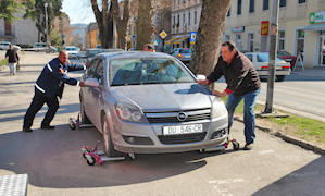 Kako se taj posao nije mogao obaviti s tridesetmetarskih vatrogasnih ljestava za taj posao angažirana je tvrtka Laura iz Dubrovnika koja je specijalizirana za radove na velikim visinama. Mi smo snimili planinara iz Laure neposredno nakon što je motornom pilom odrezao vrh cedra. Prije obaranja stabla trebalo je skloniti parkirane automobile što je učinjeno uz pomoć posebne opreme iz vatrogasnoga vozila. Na mjesta stabala koja je tijekom godina oborilo nevrijeme ili su zbog lošeg stanja uklonjena u postupku sanacije posadit će se nova stabla.