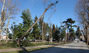 27.2.2009. - Jučer su u gradskom parku prolaznici mogli vidjeti neobičan prizor. U sklopu sanacije parka trebalo je oboriti stari cedar visok 35 metara, ali prije toga mu je vrh trebalo skratiti desetak metara.