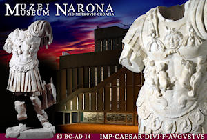 Metković, 15.4.2009. - Nakon što je Arheološki muzej Narona u Vidu privremeno ostao bez Vespazijanove statue (trenutno jedine s glavom) na tribinu hrama s restauracije je vraćena središnja statua koja predstavlja cara Augusta u svečanoj ratnoj odori.