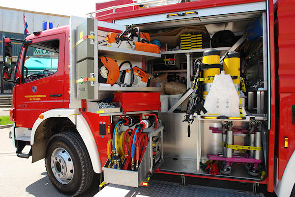 Na dvije lokacije u gradu, Trgu dr. Franje Tuđmana i u krugu OŠ Don Mihovila Pavlinovića, izveli su pokaznu vježbu, odnosno prezentirali vatrogasnu opremu. Tijekom vježbe prezentiran je rad na visini i to uz pomoć vozila opremljenog ljestvama s košarom koje se izvlače do dužine od 32 metra te rad s malom autoplatformom koja je opremljena korpom koja se izvlači na 14 metara. Pokazana su i dva vozila koje je Postrojba u suradnji s Gradom Metkovićem nabavila u sklopu vladinog Programa nabave 210 vatrogasnih vozila za potrebe jedinica lokalne samouprave u razdoblju 2003. - 2009. Vozila zajedno vrijede oko šest milijuna kuna i imaju najsuvremeniju vatrogasnu opremu koja je trenutno dostupna na tržištu. Prikazan je i rad s hidrauličkim razvalnim alatom te posebnim sustavom CAFS za rad s pjenom.