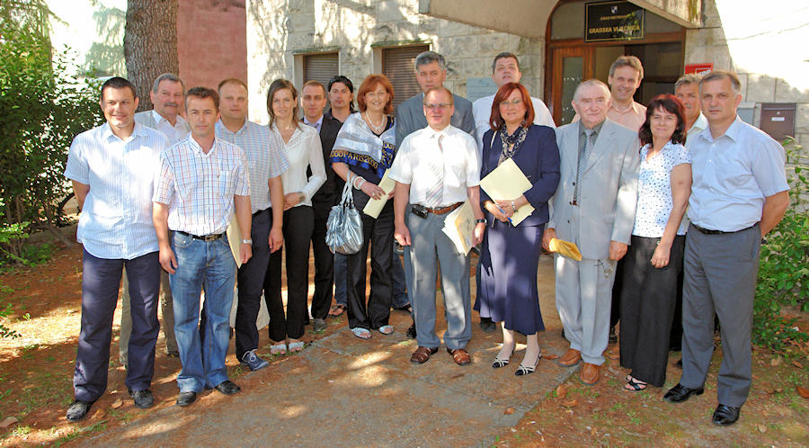 Članovi Gradskoga vijeća s lijeva nadesno: Nikša Kaleb, Joško Jelaš, Robert Doko, Dalibor Obradović, Žaklina Marević, Nikola Veraja, Markica Dodig, Asja Palinić-Cvitanović, Mišo Glavinić, Marko Marušić, Blažko Mijić, Darka Volarević, Ivan Plećaš, Vatroslav Vugdelija, Ubavka Mostahinić, Pero Marušić i Pero Nikoletić.