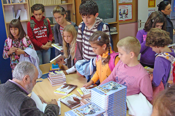 Metković, 14.10.2009. - Jučer je u OŠ Stjepana Radića održan književni susret s književnikom Šimom Storićem kojemu su nazočili učenici od 4. do 7. razreda, uzrasta kojemu se Storić najčešće obraća u svojim knjigama za mladež.