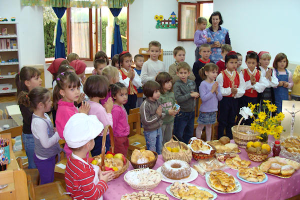Mali vrtićani zajedno sa svojim tetama i ostalim djelatnicima Centra pripremili su prigodan program tijekom kojega su se pjesmom i recitacijama zahvalili za darove prirode. Različite vrste kruha, peciva i kolača u Centralnom vrtiću blagoslovio je fra Miroslav Ančić, svećenik župe Sv. Ilije, a u vrtiću Radost don Senko Antunović, župnik župe Sv. Nikole.