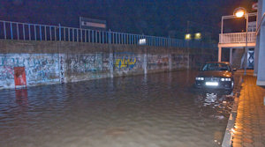 Lijeva strana grada je u puno boljem položaju, no i tamo ima problema. Jedan od njih je jezero koje se stvorilo oko Srednjoškolske sportske dvorane, a nastalo je izbijanjem vode iz kanalizacijskog sustava, pa su na ulaze u dvoranu postavljene vreće s pijeskom.