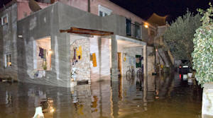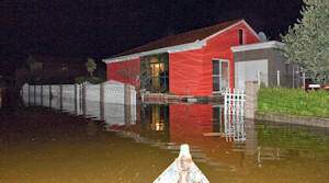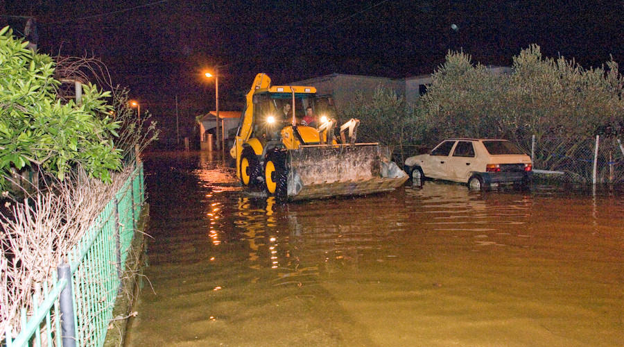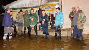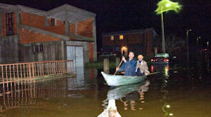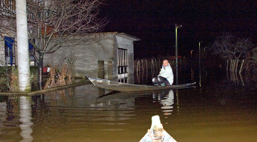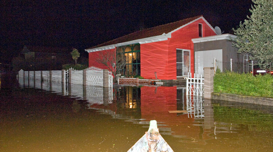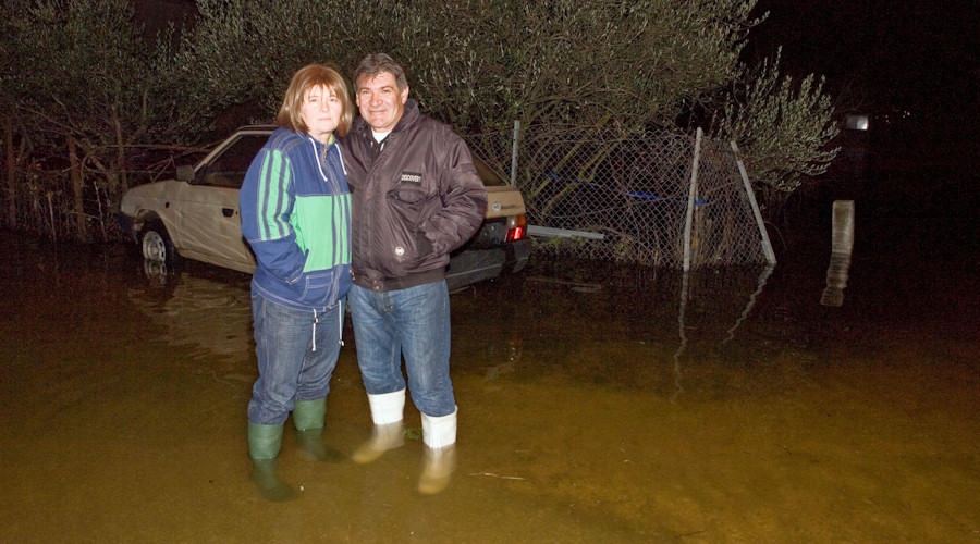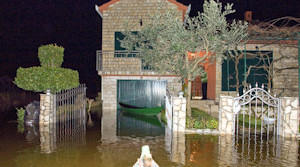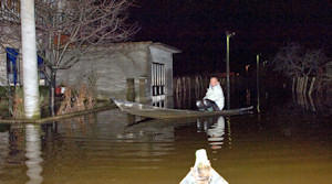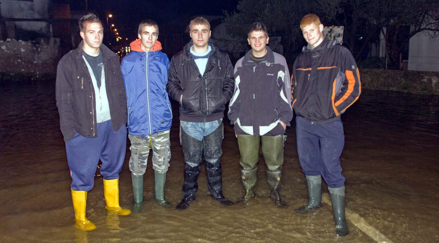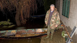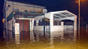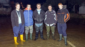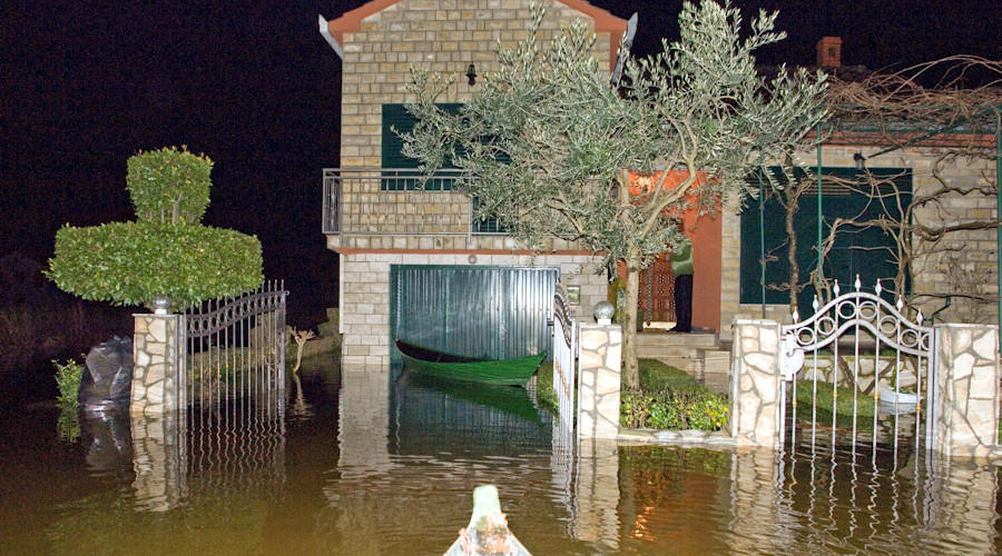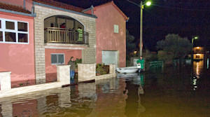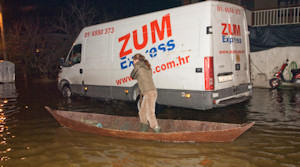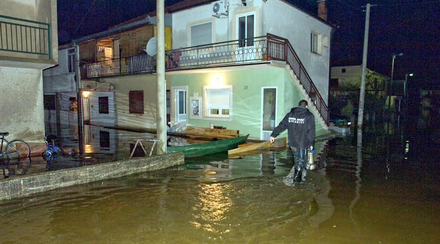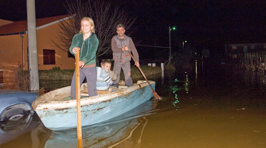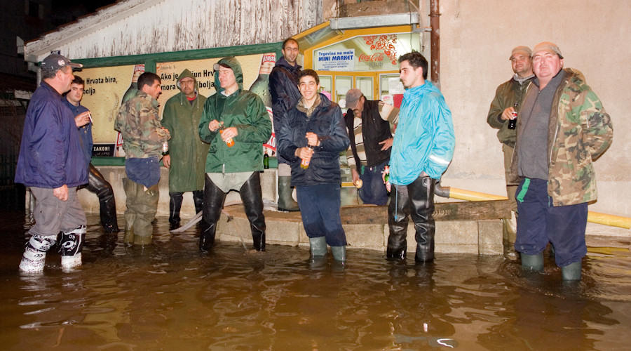 Nakon što smo pedesetak metara ušli u Zagrebačku vidjeli smo da ni obične čizme nisu nešto. Pred nama je prošla cura u trupi i dala nam ideju – treba nam trupa. Na svu „sreću“ naišli smo na Antu Krstičevića Baju koji nam je spremno ustupio jednu od svojih trupa pa smo se na vesla otisnuli u snimanje ove fotoreportaže. Zagrebačka je skroz pod vodom, ali teže stanje je u Ulici neretvanskih gusara, mada nam tako na početku nije izgledalo. Veslajući dalje voda je postajala sve dublja, a pred nama su se prikazivali strašni prizori. Bliski susreti Veslajući Ulicom Neretvanskih gusara često smo susretali ljude u trupi, jedinom prijevoznom sredstvu kojim mogu nešto obaviti. Fotografije za uspomenu Na raskrižju "pred trafostanicom" susreli smo skupinu mladića koje smo fotografirali za uspomenu na ovaj siječanjski dan 2010. Malo dalje u Zagrebačkoj društvo ni poplava nije mogla spriječiti u njihovu subotnjem druženju. Višestruki prvak u skokovima s mosta Šime Manenica sa suprugom. Pomoć Uz čizme i trupe najtraženiji su građevinski blokovi i vreće s pijeskom. Na poplavljenom području zatekli smo buldožer "Komunalnoga" kojim su dopremljeni blokovi i kamion kako razvozi vreće s pijskom. Zahvala Ante Krstičević Baja pred svojom "rivom". - Ja sam se s poplavama rodio, ali nikada mi do sada voda nije ovako visoko došla pred kuću.