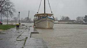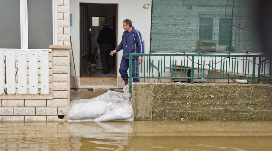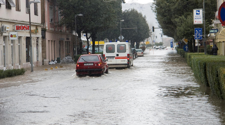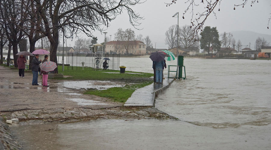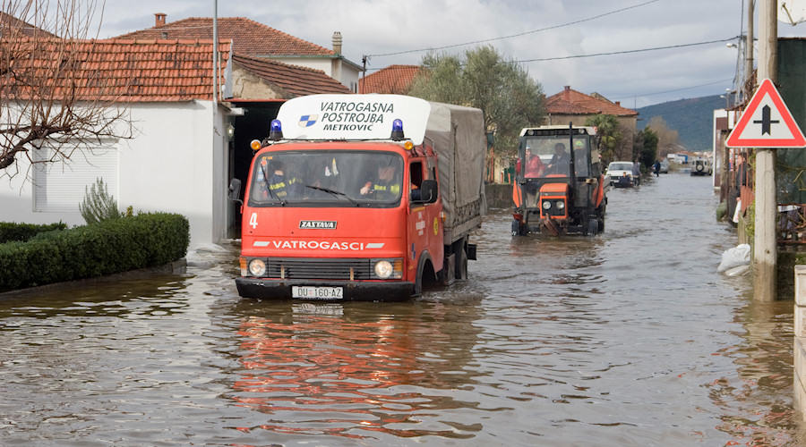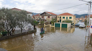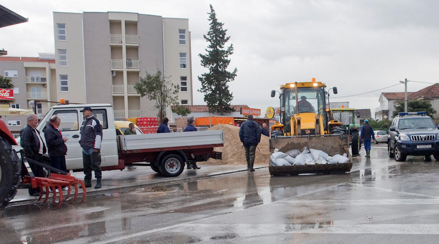 Mi smo pošli ulicom Put Narone, ali nismo mogli do raskrižja sa Zagrebačkom jer je od sinoć voda porasla za preko 20 cm. Na povratku s druge strane mosta zatrkli smo Nikšu Kaleba u ronilačkom odijelu. Rekao nam je kako je oformljena ekipa koja će u gumenim čamcim priskakati u pomoć starijima i nemoćnima koji se žele prebaciti na drugu stranu radi odlaska u Dom zdravlja i sl. ili trebaju neku drugu pomoć. Usput smo snimili stanje na velikoj rivi koje je, na žalost, nepromjenjivio. Gundulićevom se ovaj put nismo usudili jer je voda toliko narasla pa postoji opasnost da se osobnim automobilima ugasi motor. Alternativni smjer je preko velike rive pa uz malu rivu do raskrižja kod Mercatora. Na tome dijelu policija regulira promet.
