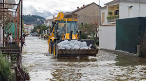 10.1.2010. - Neretva se ustalila na nekih 385 cm, ali poplavne vode na desnoj strani i dalje rastu. Danas je po gradu primjetno više ljudi i strojeva te se velike količine vreća s pijeskom dostavlja na poplavljeno područje.