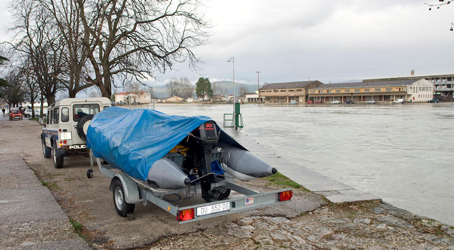 11.1.2010. - U odnosu na sinoć jutros je stanje na Neretvi puno povoljnije. Oko 10 sati vodostaj je pao ispod 350 cm što se osjetilo i središtu grada pa glavna prometnica više nije pod vodom.