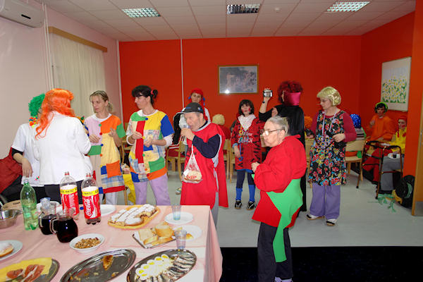 Djelatnici i korisnici Doma otvorili su vrata gostima i članovima Metkovskog pokladnog društva te su se uz pjesmu i ples s njima družili odlično se zabavivši. Za tu prigodu izvučeni su kostimi i drugi rekviziti korišteni proteklih godina što, naravno, nikome nije smetalo, a veselja je bilo u izobilju. Kako bi sve bilo još veselije pobrinule su se kuharice Doma koje su za ovu prigodu pripremile bogatu spizu s tradicionalnim slasticama poput fritula i krafna, kolača i peksimeta koji su im postali gotovo zaštitni znak.