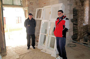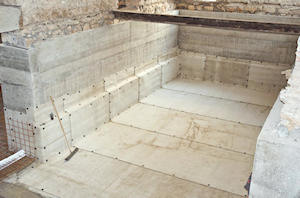 Nakon što je na pod i zidove položena voltex hidroizolacija obavljaju se radovi na izlijevanju AB ploče i armiranih zidova koji će nositi novu podnu AB ploču prizemlja. Paralelno s građevinskim radovima izrađuju se drveni otvori identični originalnima. Radi se o prozorima s unutarnjim i vanjskim krilom koji će, za razliku od starih, biti ostakljeni izolirajućim staklima. Između unutrašnjeg i vanjskog krila postavit će se zavjese.