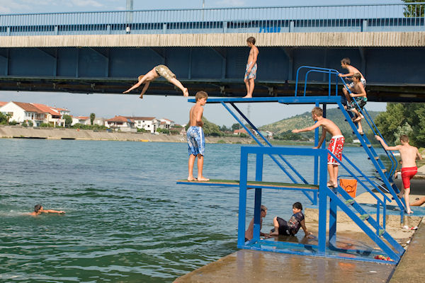 5.7.2010. - Mala i velika skakaonica pokraj mosta i ove godine omiljeno su okupljalište mladih željnih osvježenja u prohladnoj Neretvi. Okupljanje počinje već iza podneva, a najveća gužva obično je oko 14 sati.