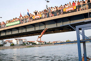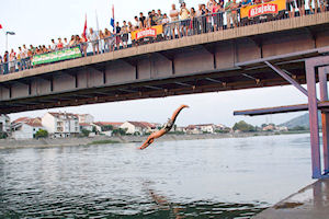 19.7.2010. - Pred oko tisuću gledatelja koji su se natiskali na obali i mostu u subotu su održani Skokovi u Neretvu, natjecanje što se već sedmu godinu održava pred Svetoga Iliju.