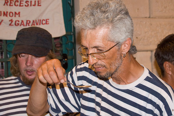 Brudet je stalno trebalo kušati... kušati... kušati... kušati... kušati... ali konačan sud dao je stručni žiri na čelu s Veljkom Barbierijem Neretvanski umjetnici i dalje se natječu Članovi Udruge 'Pivčeva kala' kuhali su veliku teću brudeta za posjetitelje i prodavali ga za 20 kn po porciji. Tako je skupljeno više od 2000 kn za Udrugu 'Leptirići' Prvonagrađeni 'Stipić-Lapić' s članovima žirija Drugo mjesto 'Konšerva' i 'Modro oko' Treće mjesto 'Trio gušti' i 'Prijatelji iz Komina'