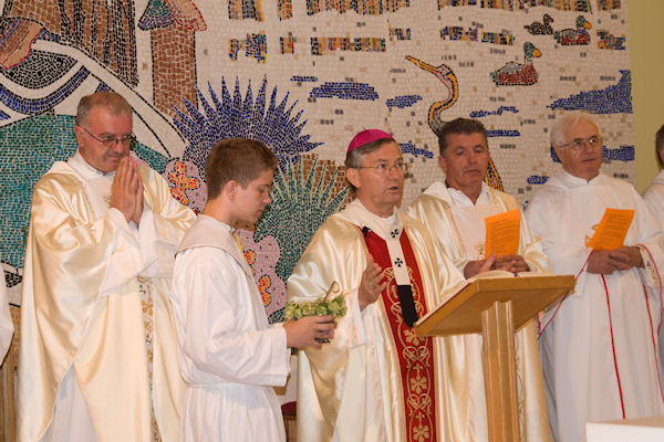 Pred svečanu misu nadbiskup Barišić je predajom ključa crkve župniku župe Sv. Ilije fra Petru Guliću simbolično otvorio crkvu nakon čega je u nju ušlo mnoštvo vjernika, među kojima je bio i metkovski gradonačelnik Stipo Gabrić dok je s kora pjevao Zbor župe Sv. Ilije. Svečanoj misi s posvetom uz nadbiskupa Barišića nazočilo je i dvadesetak svećenika.